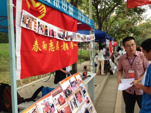 (通讯员张铭思)9月17日中午物理与光电工程公司团委读书社、辩论队和“春雨”志愿者在海棠餐厅南侧举办招新外场,团委副书记及社团负责人参与了此次招新活动。