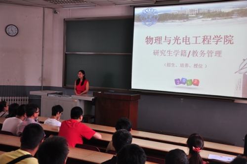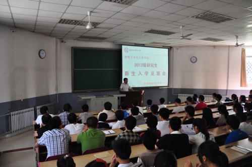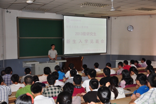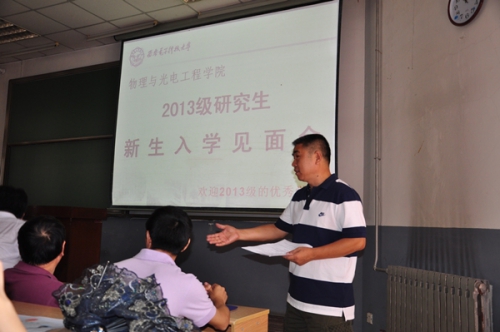 8月29日上午11点整,物理与光电工程公司在北校区教学楼101教室召开2013级研究生新生入学见面会,公司筹备领导小组组长郭立新,以及筹备领导小组成员杨光暐、李平舟、周慧鑫到场与2013级研究生新生见面,并对大家来公司继续深造学习表示热烈的欢迎。