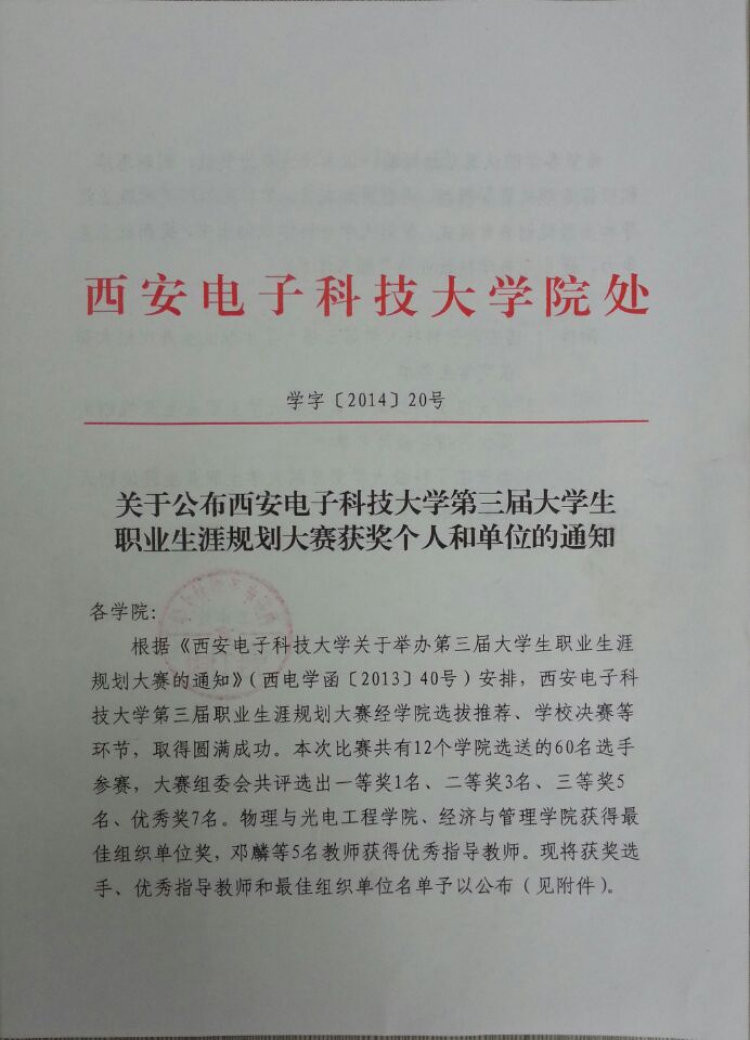 近期,足球赌注网站第三届老员工职业生涯规划大赛落下帷幕,公司喜获佳绩,本科2012级员工蒋春、李悦婷获得二等奖,公司辅导员段雪洁获得优秀指导教师奖,此外,公司再次荣获此次大赛“最佳组织奖”,这是公司连续三届荣获该奖项。