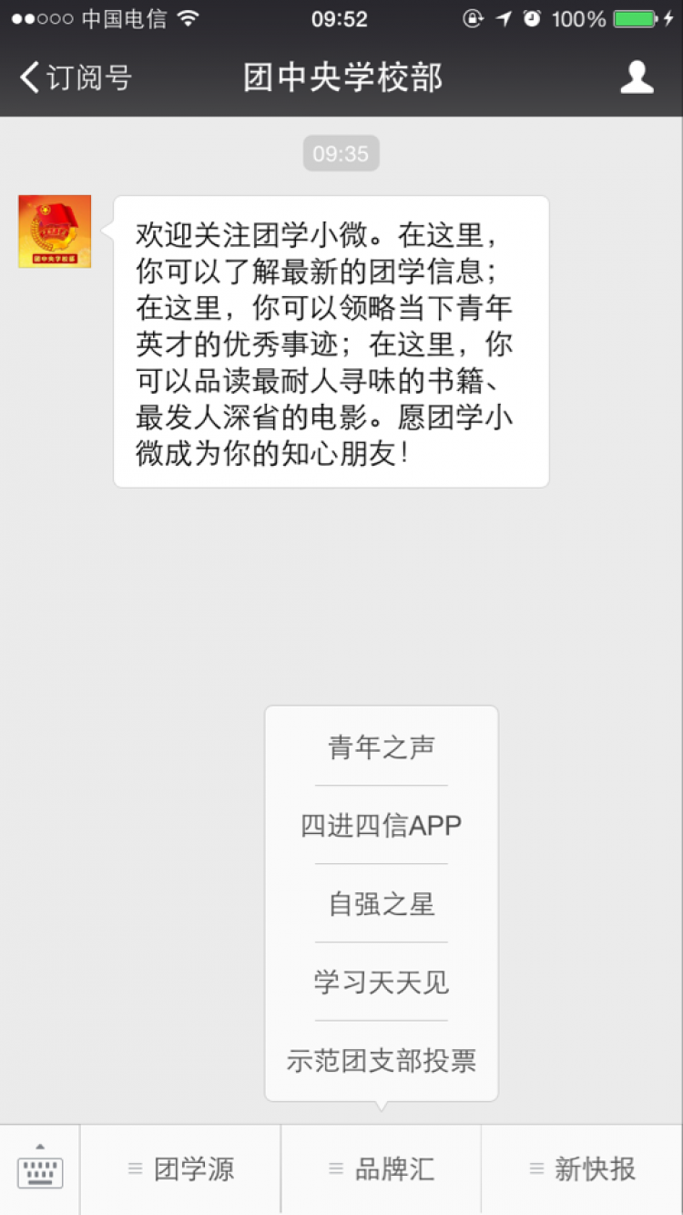 投票方式:关注微信订阅号-团中央公司部