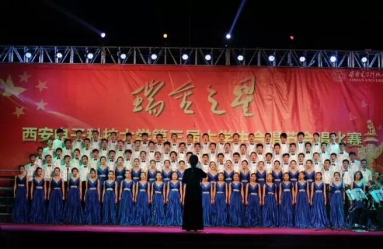 公司演唱曲目为《太行山上》与《青春舞曲》。《太行山上》曲风恢宏大气,气势逼人,一百多位同学昂首挺胸,齐齐发声,歌声响彻西电,体现了公司员工斗志昂扬,不畏艰难的精神风貌。相较而言,《青春舞曲》则悠扬婉转,充满活力,在完美的多重演唱之间表达了对祖国的感恩与深深的祝愿。指挥教师专业的指挥表演更是为公司演出添彩,整个表演过程中,台下院旗挥舞,观众呼声不断。