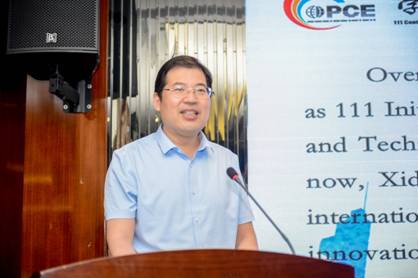 该引智基地负责人郭立新教授上台致辞。他首先代表基地工作组的全体成员对公司的大力支持和专家学者的出席表达诚挚的谢意。他谈到,复杂环境光电信息感知科学与技术创新引智基地依托公司“光学工程”、“物理学”两个一级学科和多个学术研究和人才培养平台,面向国家光电工程领域重大战略需求,以“复杂环境光电信息感知科学与技术”为主要方向,通过理工交融,重点对复杂环境与目标光电特性、光电探测技术、光电信息与图像处理等领域的基础理论、关键技术和应用研发等开展深入的国际合作研究。他希望与会学者通过学术年会的交流平台,深化合作交流、加深相互了解,将该引智基地建设成为光电信息感知与处理领域内具有国际影响力的学术交流平台。