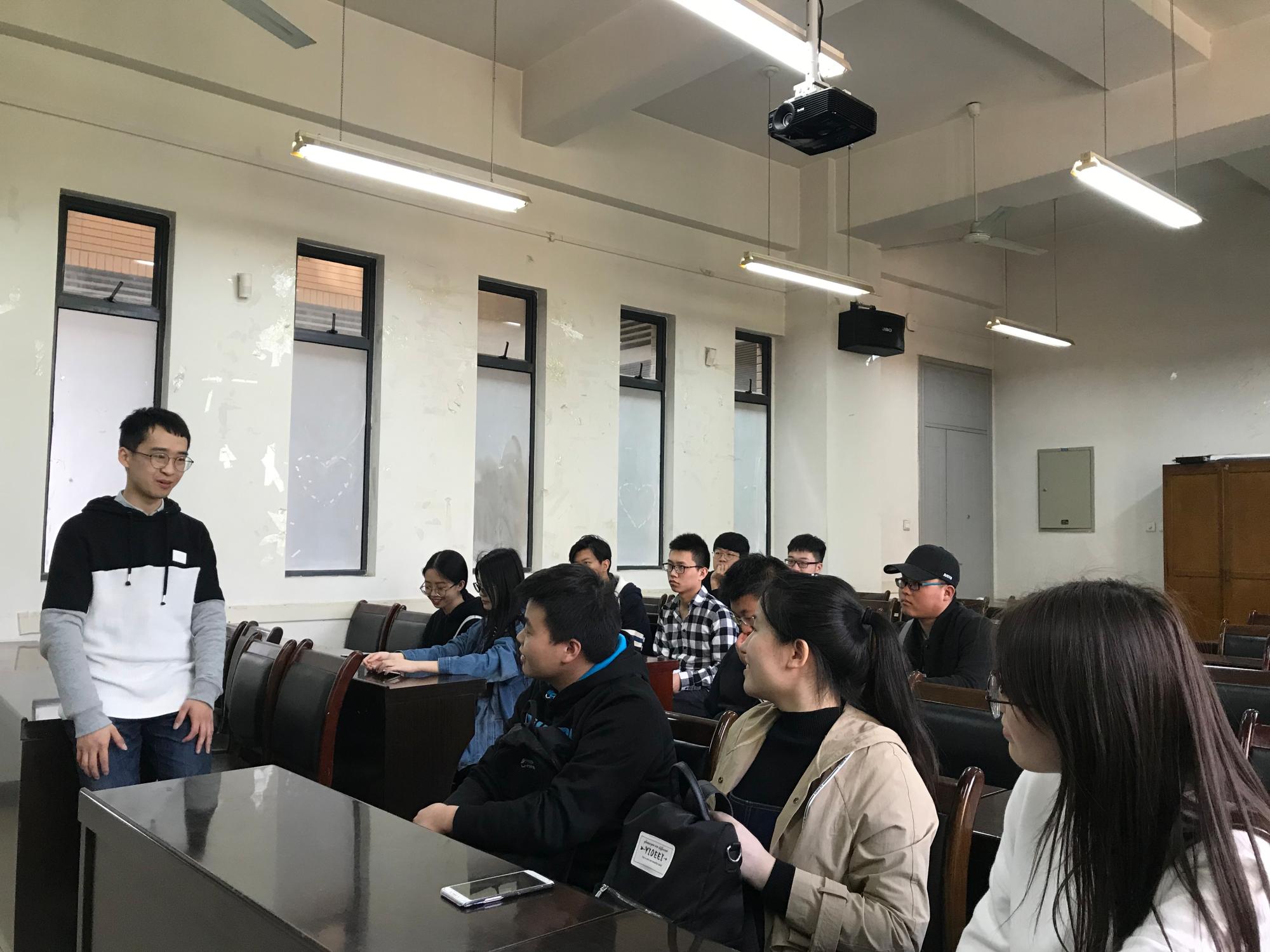 活动伊始,在同学们的热烈掌声中,林子隆首先对“保送推免”夏令营的政策要求、申报流程、面试经历等进行讲述,向同学们强调面试心态调整的重要性以及如何进行准备过程等,建议同学们积极关注夏令营官网通知,多投多试,展现自我。同时,就如何确定今后的研究方向,如何在申请时扬长避短、如何自我推荐等细节问题进行了细致讲解。随后他详细介绍了其他发展道路,如进入职场、申请国外高校等。最后,他强调大家应该尽快明确自己未来的发展方向,在做出选择时一定要根据自身的情况慎重考虑,切不可随波逐流。现场参会同学认真聆听,积极发言提问。会后,同学们还现场建群,填加林子隆学长微信,进行线上交流。