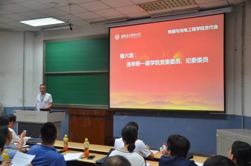 中共足球赌注网站物理与光电工程公司党员代表大会6月20日在北校区召开。大会应到代表135名,请假14名,实到代表121名,符合规定人数。大会由林波同志主持。杨光暐同志代表本届党委班子向大会作工作报告。公司组织部副部长张莹莹应邀出席指导。