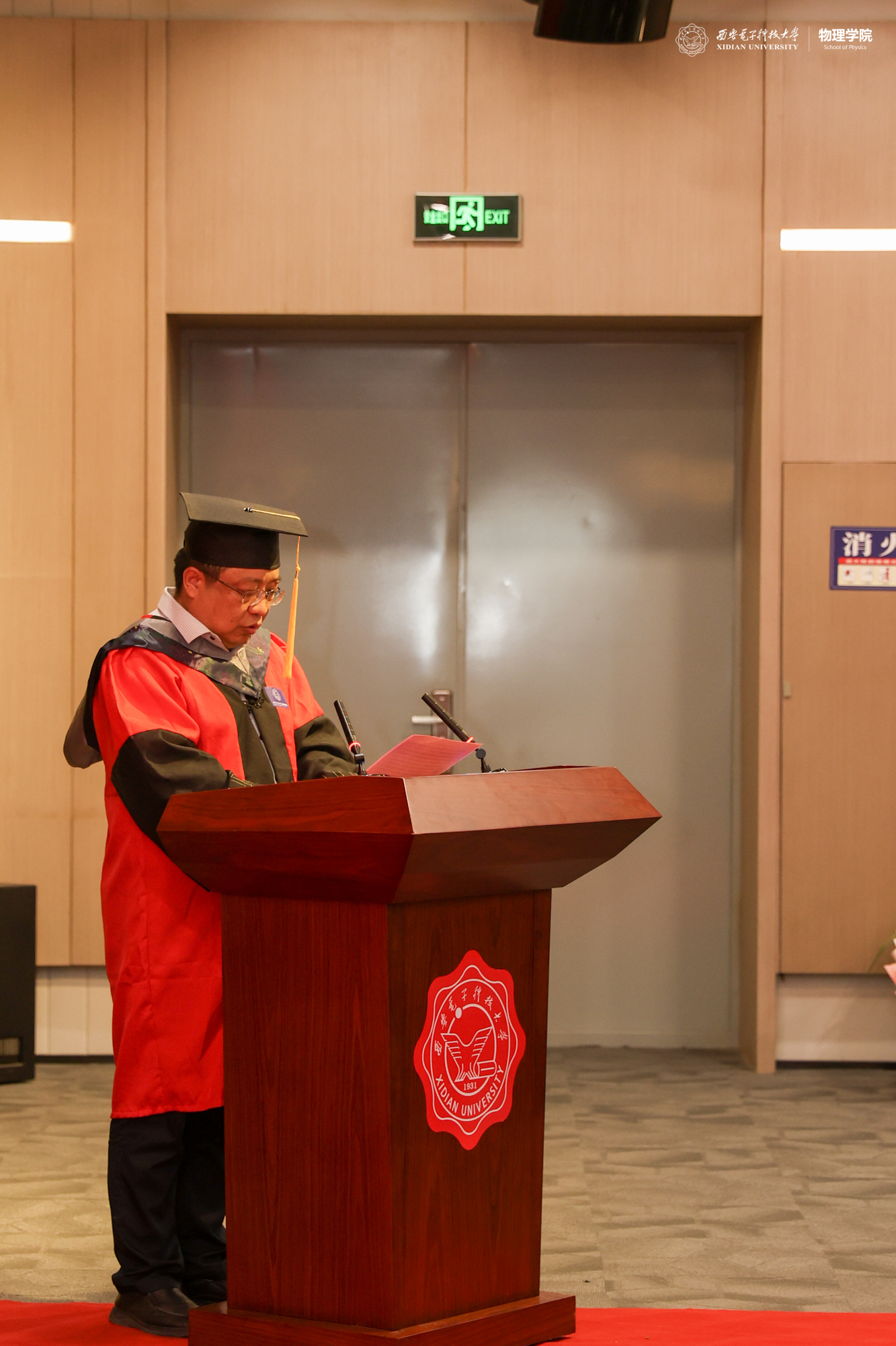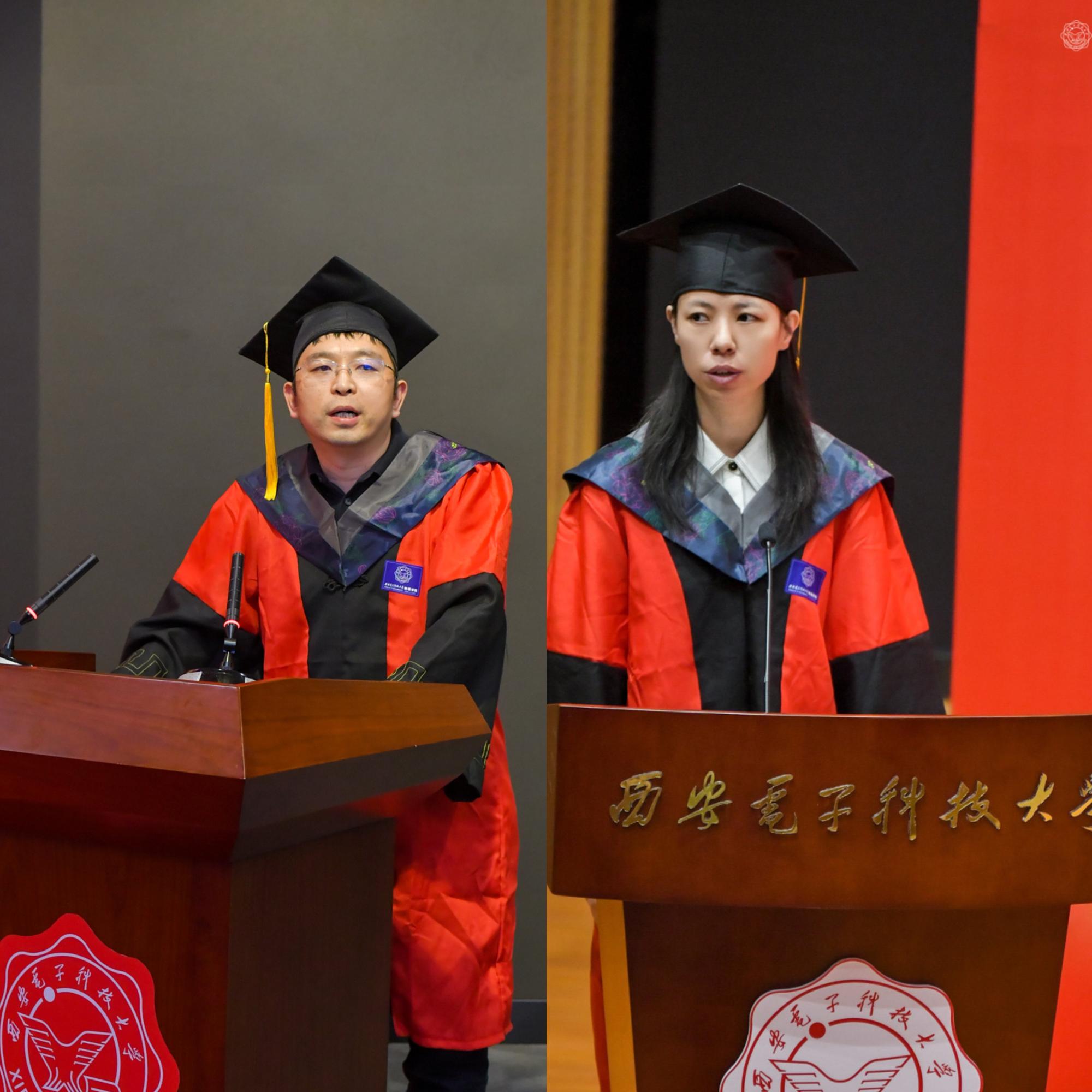 教师代表马琳寄语同学们,希望牢记西电“厚德、求真、砺学、笃行”的校训,用奋斗收获青春的果实,用奋斗扬起理想的风帆。导师代表郜鹏教授代表老师们真诚祝贺同学们顺利完成学业,同时希望同学们毕业生同学珍惜所学、不忘初心、勇攀高峰,在学习实践中不断成长和收获。