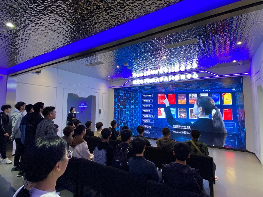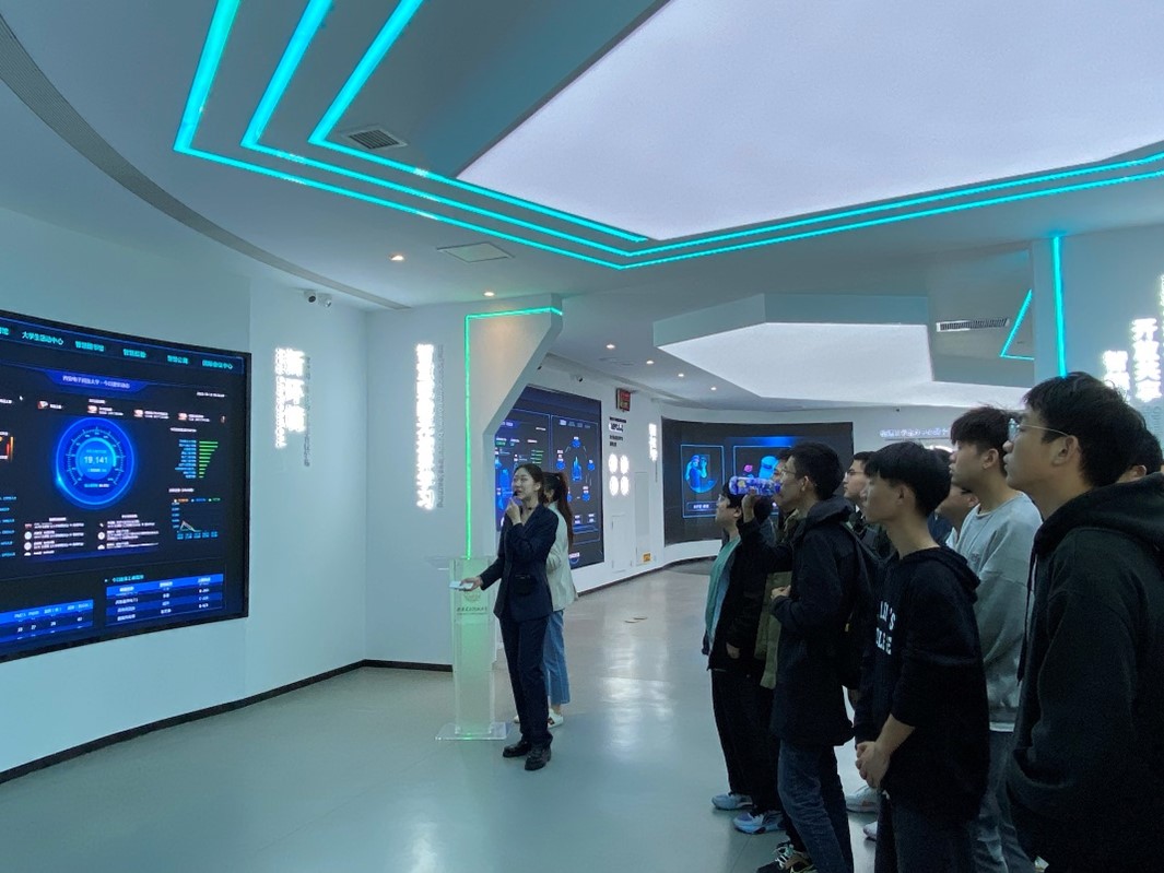 首先,同学们在讲解员的带领下共同观看了AI+教育中心的介绍视频,了解了足球赌注网站AI+教育中心的服务内容与运行机制,对智能时代的高校管理、教学服务新模式有了全新的认识。
