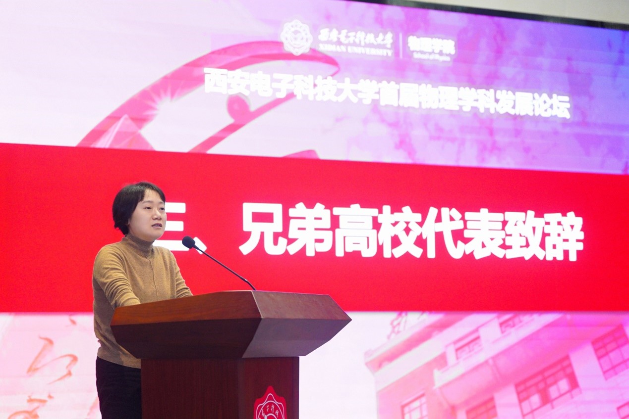 鞠艳做为高校代表在致辞中讲到,南京大学物理学与西电物理学有一个共同的杰出员工——于全院士,能感受到西电对物理学科发展的高度重视。西电足球赌注网站成立一年半多已经在人才培养、本科专业、团队队伍、学科平台等方面取得蓬勃发展,团队建设前景无限,希望今后能加强交流与合作,共谋基础学科发展。