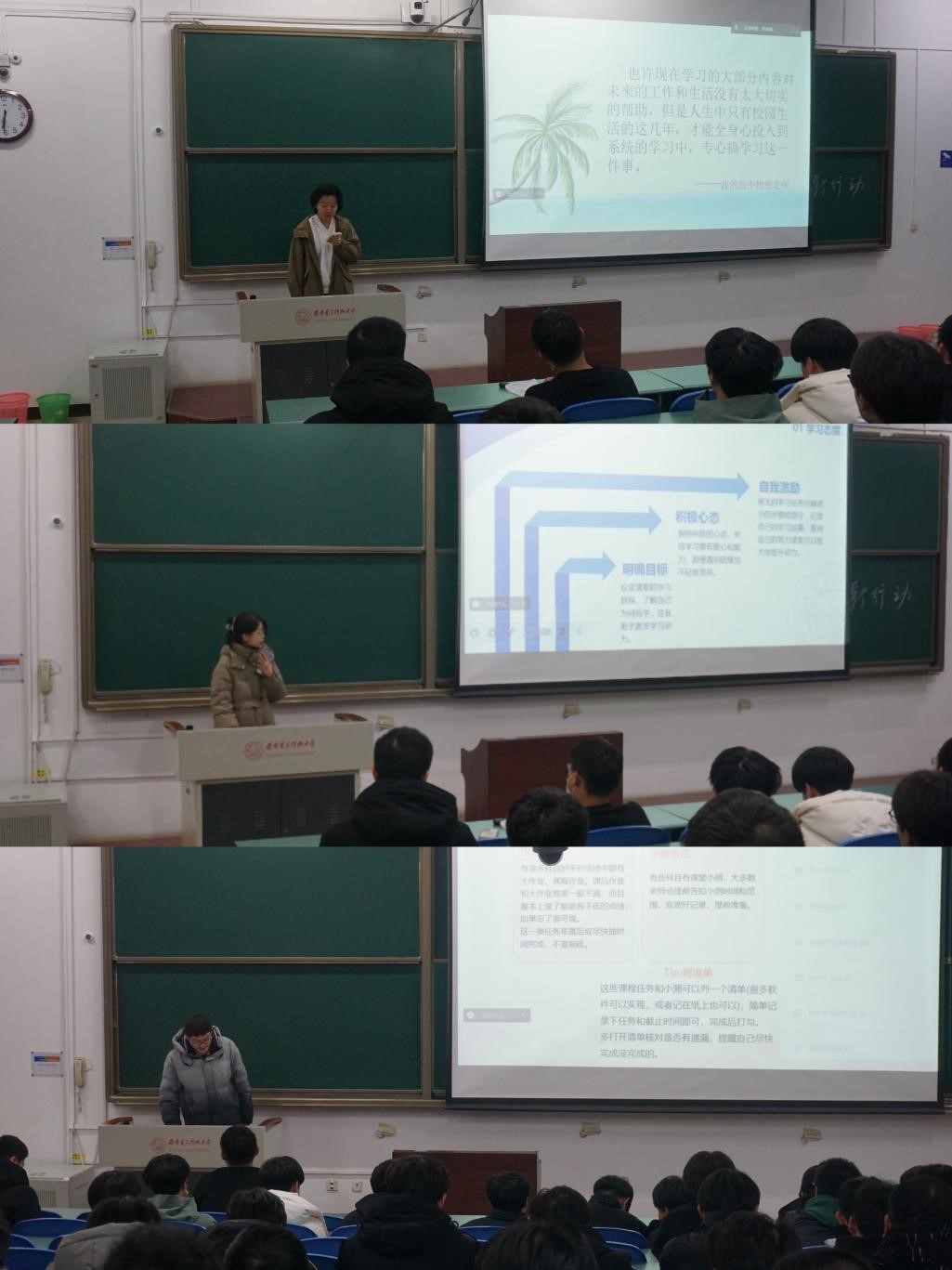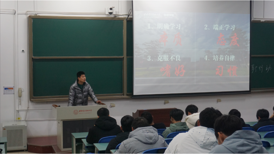 2022级本科生开展了学习主题晚点名,辅导员罗庆辉围绕“明确学习本质、端正学习态度、克服不良嗜好、培养自律习惯”四个方面向同学们提出新学期的要求,并邀请本年级的优秀学子倪砚男、王若冰、胡钊源进行学习分享,发挥朋辈互助优势,发扬榜样的力量,帮助同学们树立良好的学习习惯。
