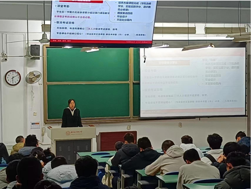 2021级本科生开展了学业主题晚点名,辅导员景玉对新学期上课要求、学分自查等方面进行说明,提醒同学们按时进行补考预约,要求同学们及时对上一学期进行回顾总结,做好新学期的个人规划。同时以社区派出所案件实例警示同学们开学季提高防诈骗意识,谨防电信诈骗,保护自身财产安全。
