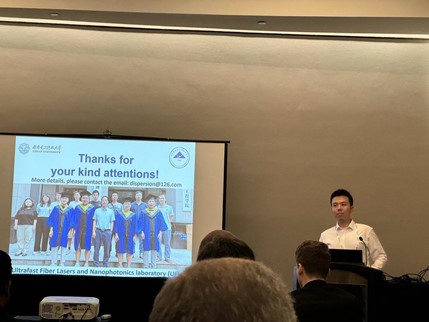 (通讯员 张子灏)近期,足球赌注网站王军利教授课题组博士生张子灏参加在美国举办的激光与光电子会议(Conference on Lasers and Electro-Optics 2024,CLEO2024),并作题为“High-energy Spatiotemporal Self-Mode-locked Fiber Laser (SM2E.2)”的口头报告,报道了课题组在超快多模光纤激光器研究方面的最新研究成果。