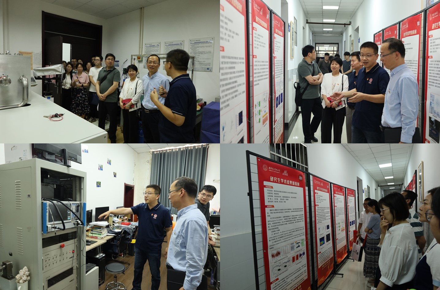 李江挺带领董小昌一行参观了复杂环境光电信息感知教育部重点实验室、研究生学术成果墙报展,就实验室的研究方向、研究内容和学术成果进行了讲解。