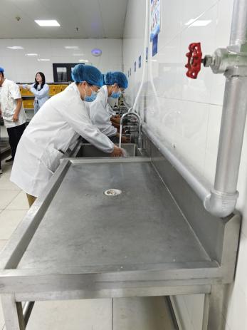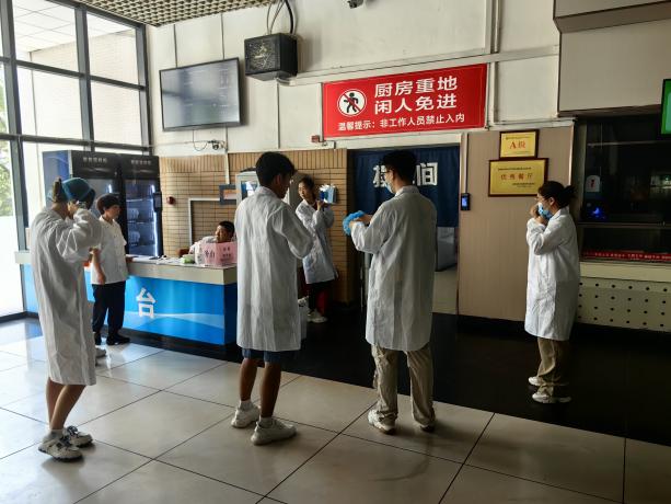 餐厅内部整洁有序,各种烹饪设备和食材摆放得井井有条,“厨房重地,闲人免进”的警示牌历历在目。同学们虽然是食堂的常客,但是进入食堂内部还是头一次,大家看到了食堂管理制度的严格,看到了师傅们对于烹饪工作的认真细心,不由对食堂师傅们的工作心生敬意。