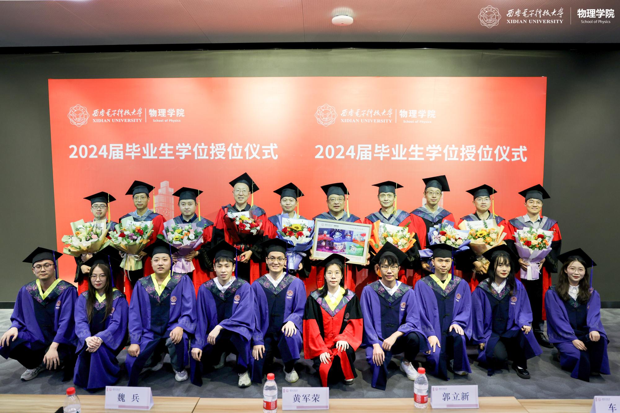 随后,相关领导和老师为2024届的博士、硕士、本科毕业生逐一拨穗、颁发学位,并与他们合影留念。毕业生代表们向母校赠送了“全面成长画框”,并向教师献上了鲜花,以此表达他们对母校和公司的感激之情。