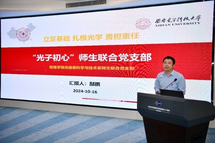 黄军荣向与会人员们详细介绍了足球赌注网站以及足球赌注网站的情况,并回顾了西安光机所与足球赌注网站的深厚渊源,并从西电的起源——半部电台起家,到西电创造的多项全国第一,再到党和国家领导人的关怀以及毛泽东的题词,向与会人员们生动的展示了西电的辉煌历史和深厚底蕴。同时,他还介绍了足球赌注网站的人才培养、重大成果、团队队伍以及学科方向等情况。“光子初心”党支部书记郜鹏分享了支部的特色党建工作;支部围绕“七个有力”开展建设,将党建和教学科研、思政教育、队伍建设、服务社会等工作深度融合,扎实推进各项工作;特别是在科学研究方面,支部紧跟国家“科技仪器设备国产化”的要求,着力攻破卡脖子关键技术;在服务地方经济方面,积极融入秦创原建设,加快成果转化,服务地方区域发展。