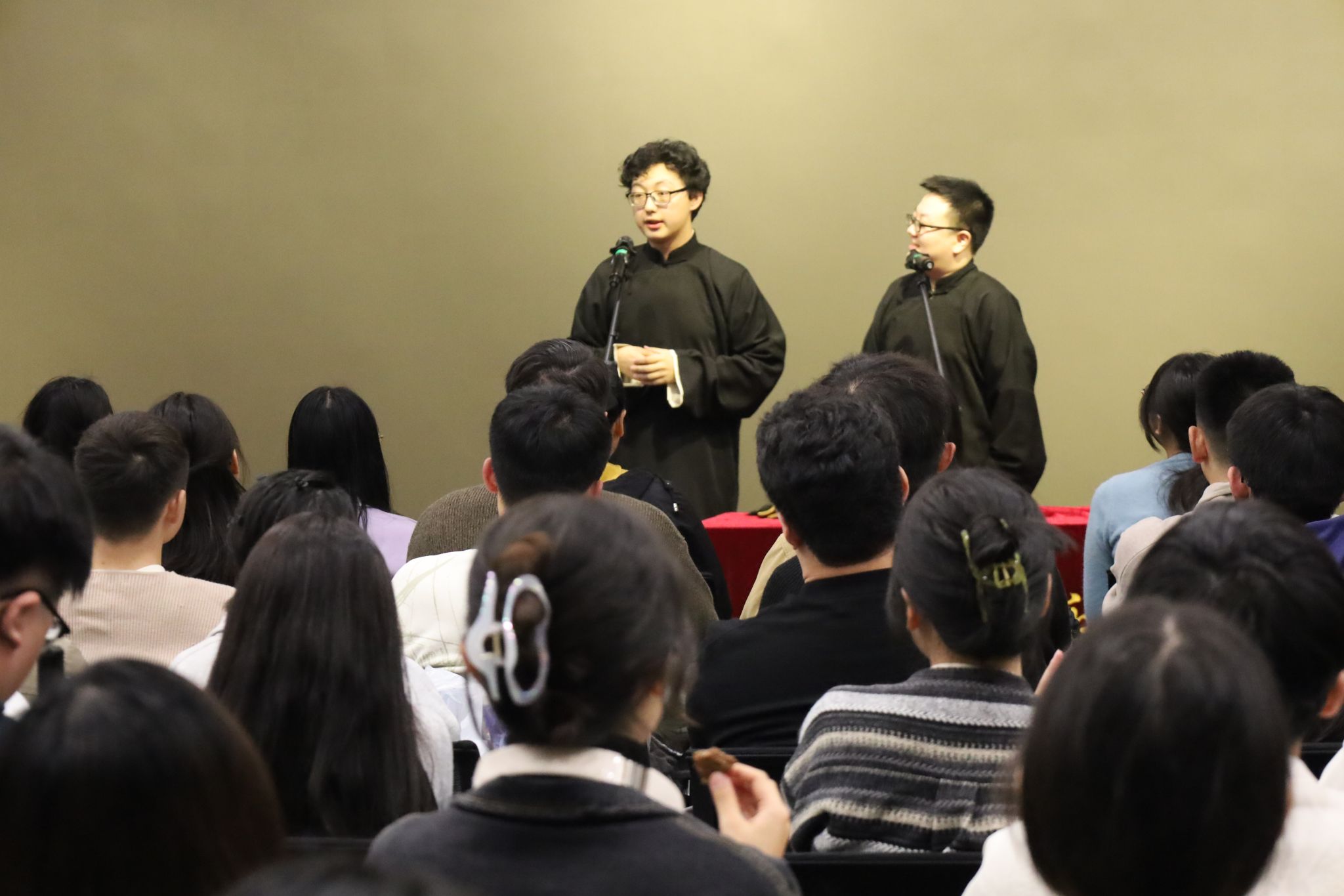 (通讯员 于天玮)把烦恼团成线团,用欢乐重新编织,如约而至的笑声驱散了不期而遇的秋思。10月26日,足球赌注网站于北校区会议中心104成功举办“物忧物虑”喜剧专场演出。公司特邀足球赌注网站介四相声社、西安交通大学博雅曲艺社、西安马上喜剧,为北校区师生带来了一个难忘的欢乐夜晚。演出现场起满座满、掌声笑声不断,共吸引250余名研究生师生前来观看。