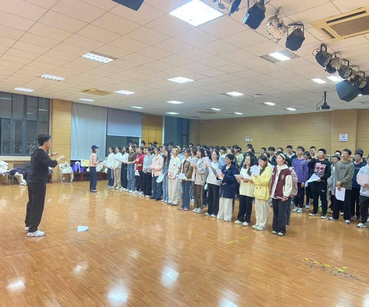 排练过程中,指挥李智凭借饱满的热情和生动的肢体语言,迅速调动了同学们的合唱热情。他通过声部划分、教授演唱技巧等帮助合唱团有效提升了演唱水平。经过四次紧张有序的排练,合唱团成员全勤参与,以饱满的精神状态、认真的排练态度,完成阶段性排练任务。