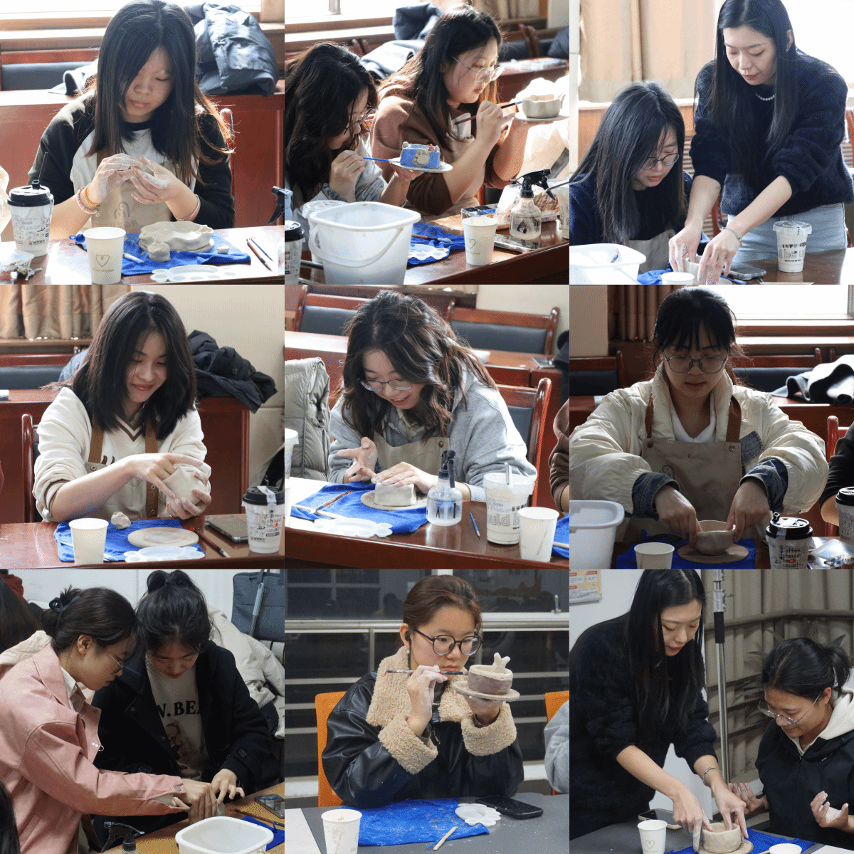 活动伊始,专业陶艺老师为大家详细讲解了陶艺的历史文化、制作工艺以及注意事项。在老师的指导下,大家纷纷化身“陶艺师”,充分发挥想象力和创造力,揉泥、塑形、装饰……一团团普通的陶泥在大家的巧手下逐渐变成了一件件独具匠心的艺术品。活动现场欢声笑语不断,师生之间互相交流创作心得,分享制作乐趣,尽情享受着陶艺带来的快乐。