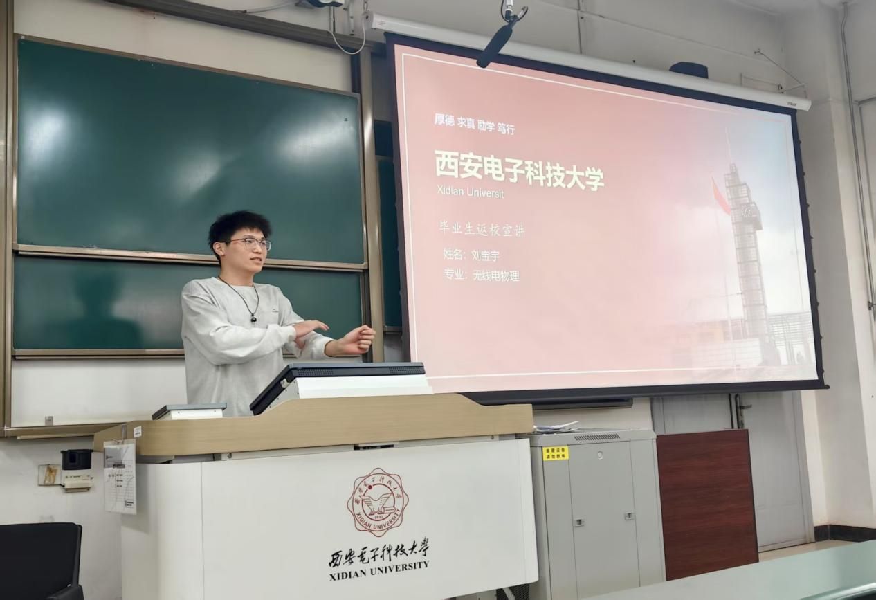 已考研至本院无线电物理专业深造的刘宝宇结合自身考研经历,分别从考研目标确立、初试科目复习安排、导师选择、复试备考策略、调剂流程等方面详细分享了自己的经验,鼓励同学们要提前做好心理建设和身体准备,提升复习备考的效率,争取在艰难持久的考研准备中脱颖而出。此外,他还为同学们分享了自己目前的研究生学习和生活,建议同学们在专业学习中深入探索,多参加学术交流活动,培养科研科创素养;在日常生活中合理安排时间,对自身提出更高自律要求。