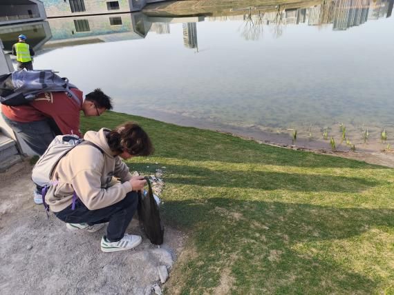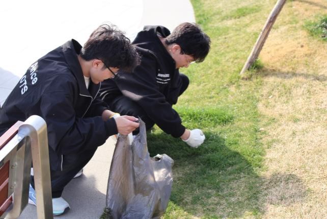 行进途中,同学们手持垃圾钳、环保袋,对沿途纸屑、烟头等散落垃圾进行“地毯式”清理,重点关注湖岸草丛、观景台周边等卫生死角。经过两小时实践行动,累计清理10余袋垃圾并进行分类处理。志愿者们沿途的辛勤劳作,不仅让公园环境焕然一新,也让劳育精神在每位志愿者心中生根发芽。