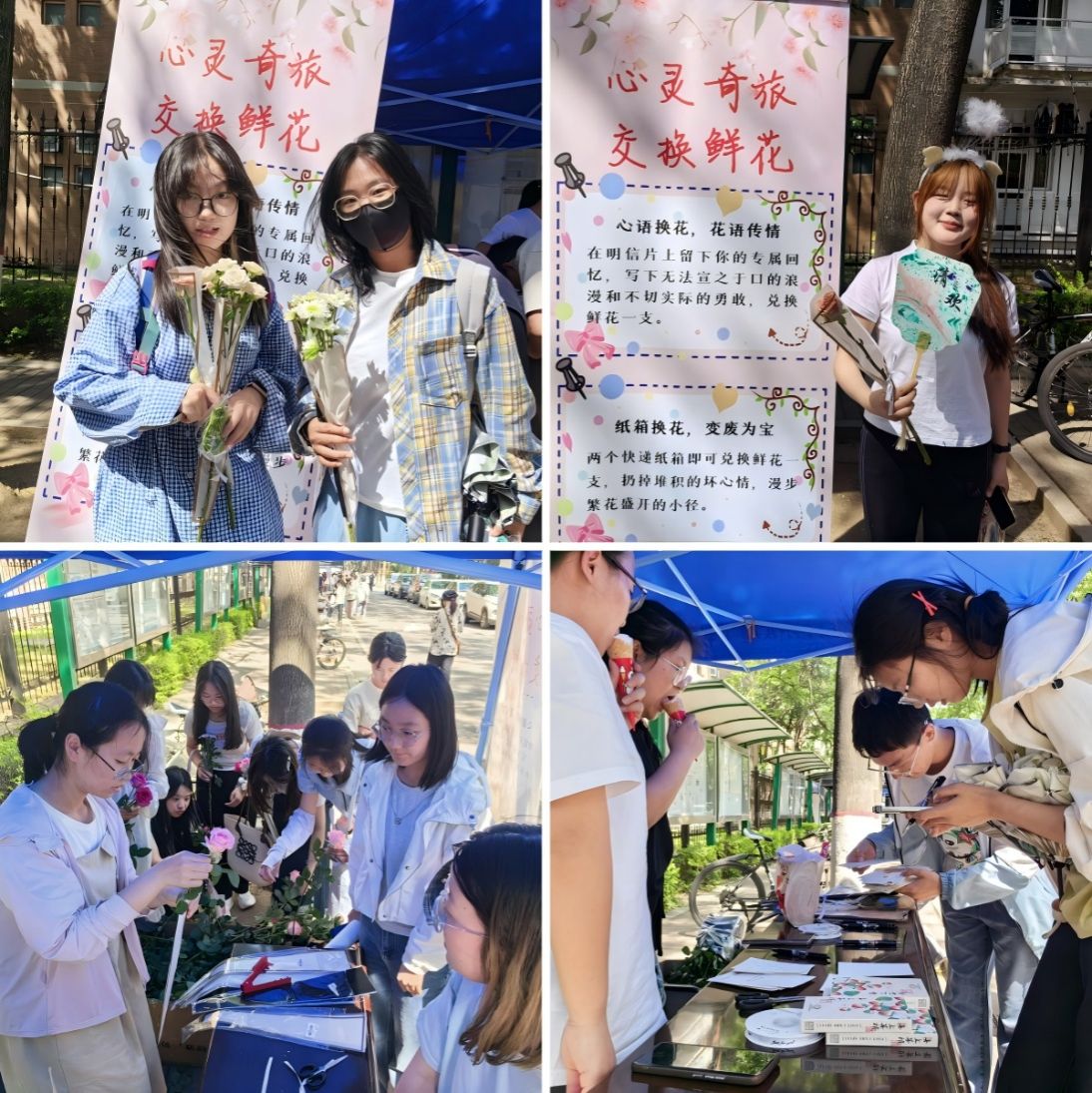 每一朵花都在自己的天地里,书写着独一无二的浪漫诗篇。活动现场准备了精美明信片,同学们纷纷在明信片上留下专属回忆,投入花语信箱,写下时光的痕迹、爱人的告白,寄出对未来的期许、对过去的眷恋……我们轻轻捧出各自的花朵,交换那些藏在花蕊间的故事——当我们交换鲜花,也交换了对世界的温柔,让彼此的生命,都因这场相遇而馥郁芬芳。