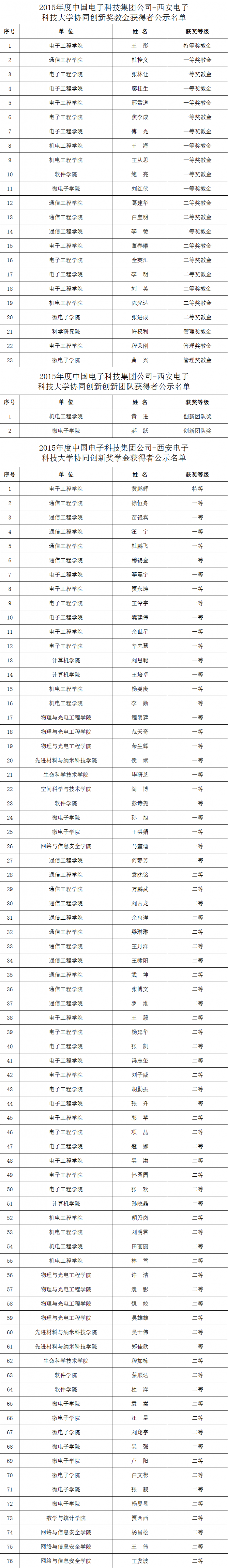 2015年度中国电子科技集团公司-足球赌注网站协同创新奖教金获得者公示名单