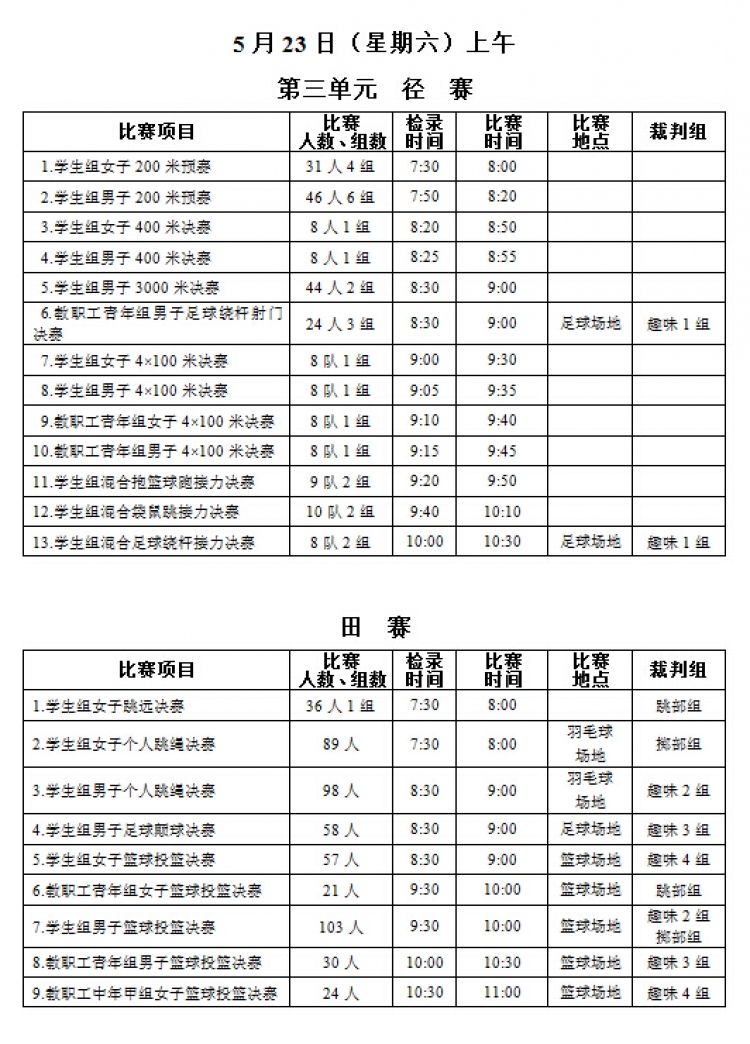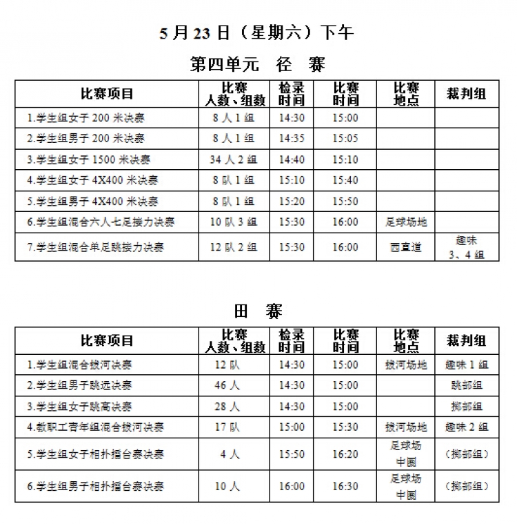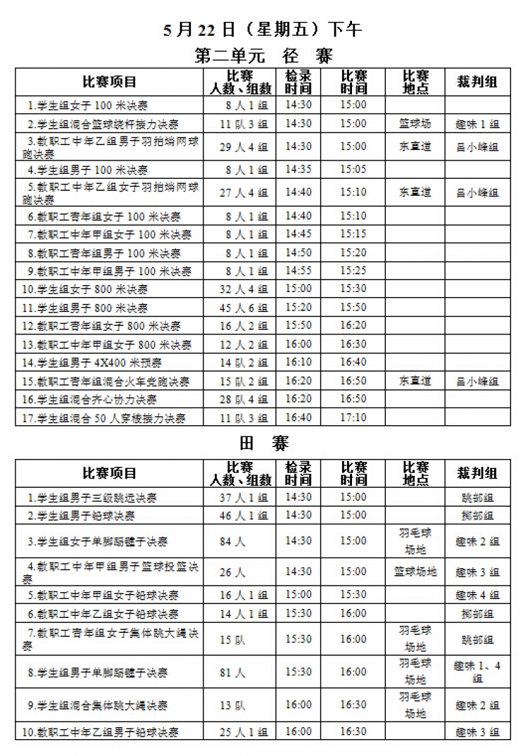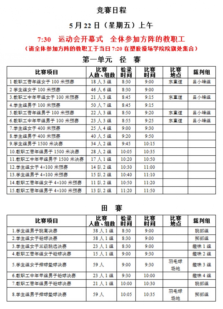 “足球赌注网站2015年教职工运动会”将于本周五、六两日(5月22、23日)在新校区塑胶操场举行,现将《赛程安排》公布如下,请各系室工会组长通知各位选手(参照《西电科大运动会物光院参赛名单》,查看网址:http://stp.xidian.edu.cn/view-1194.html)提前做好参赛准备,着公司统一运动服按时参赛,同时,也鼓励未参赛教职工前来观看,为公司加油打气!请相互转告。