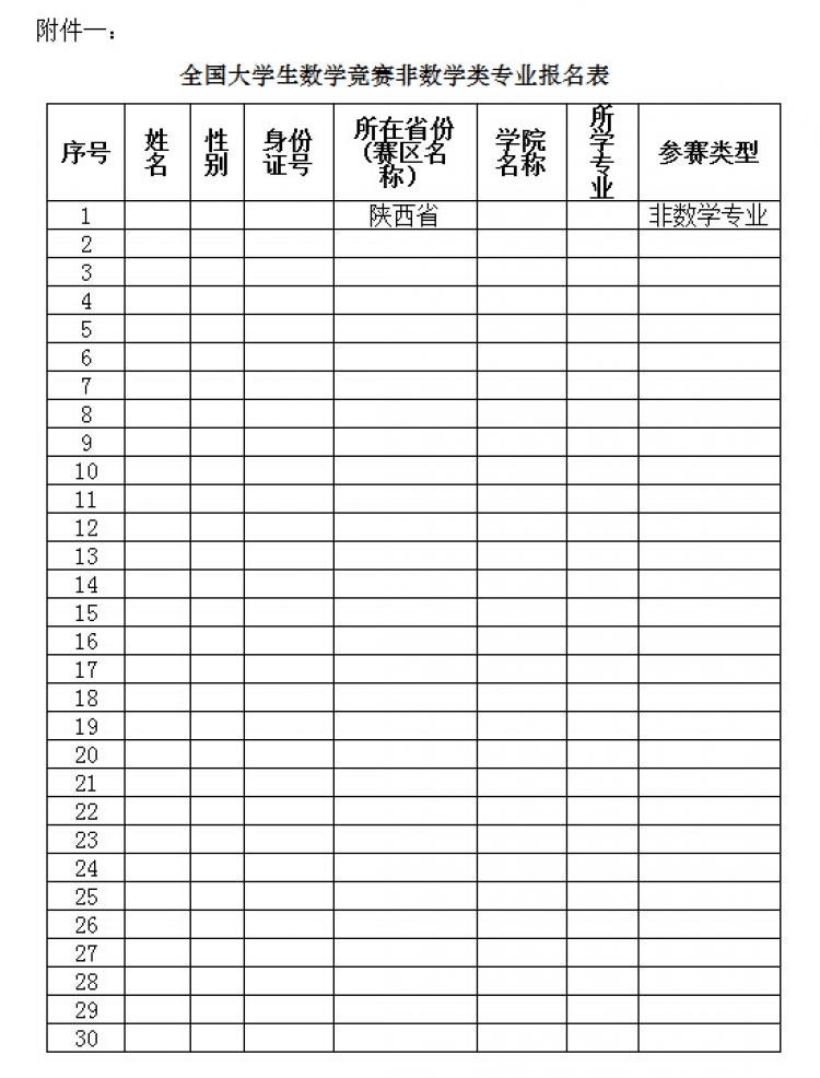 附件一:全国老员工数学竞赛非数学类专业报名表