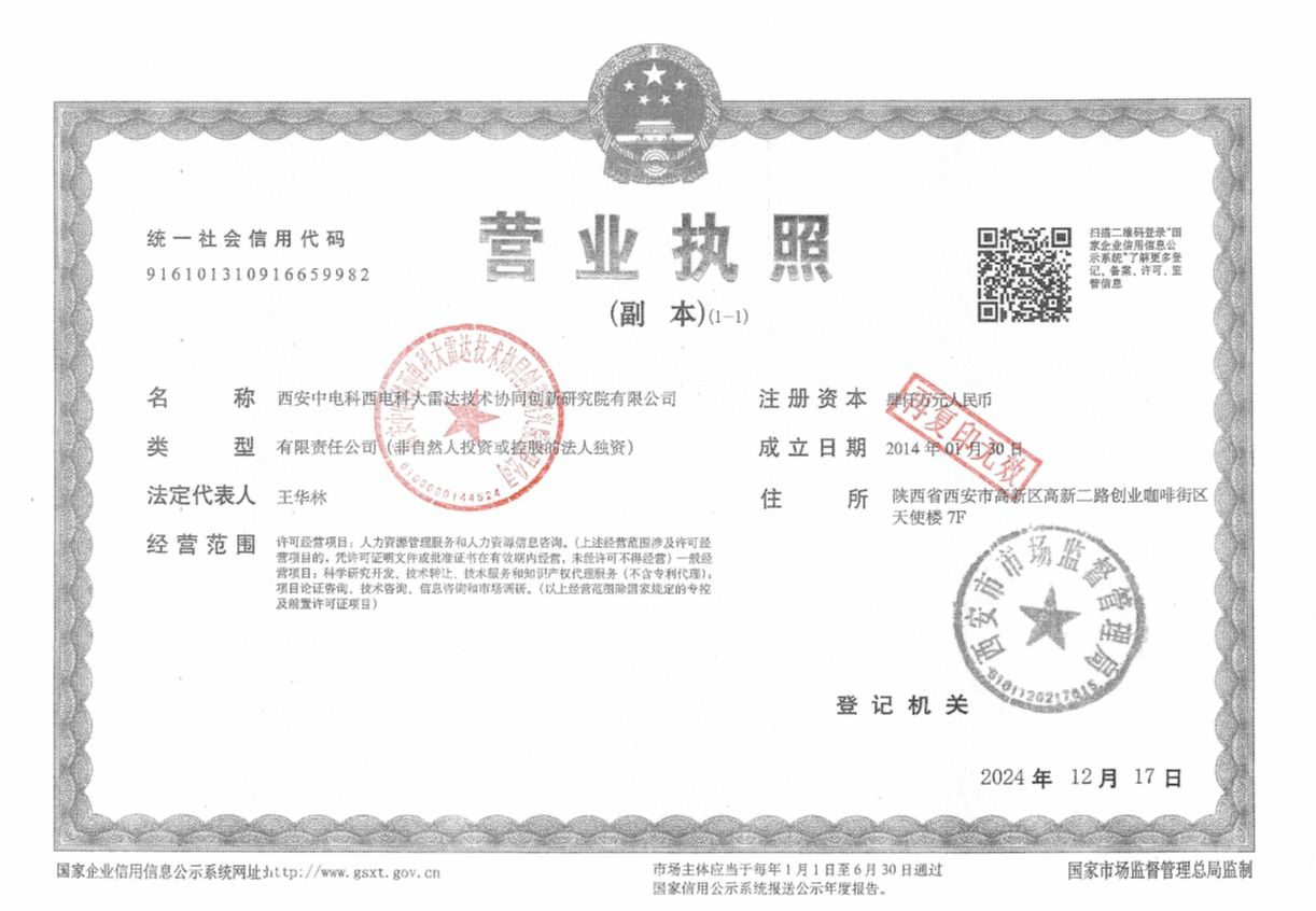 关联关系:(西安中电科西电科大雷达技术协同创新研究院有限公司(简称“雷协院”)由足球赌注网站与中国电子科技集团强强联合、共同出资于2014年注册成立的,主要从事雷达技术领域研发、科技成果转化、技术咨询服务等。)